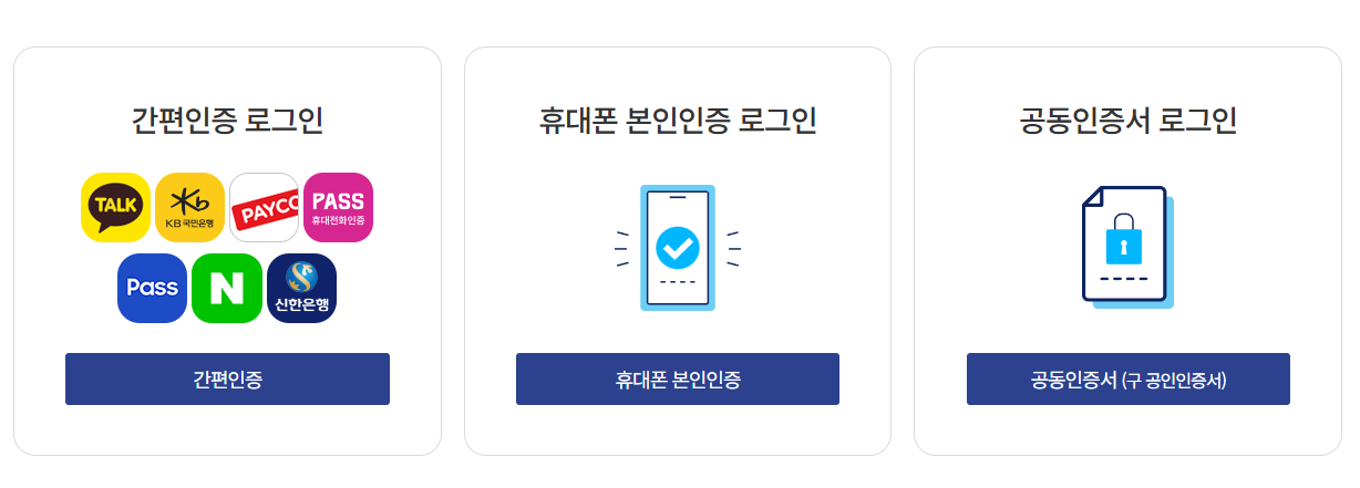 본인 인증: 공인인증서, 휴대폰 인증 등의 방법으로 본인 인증을 진행합니다.