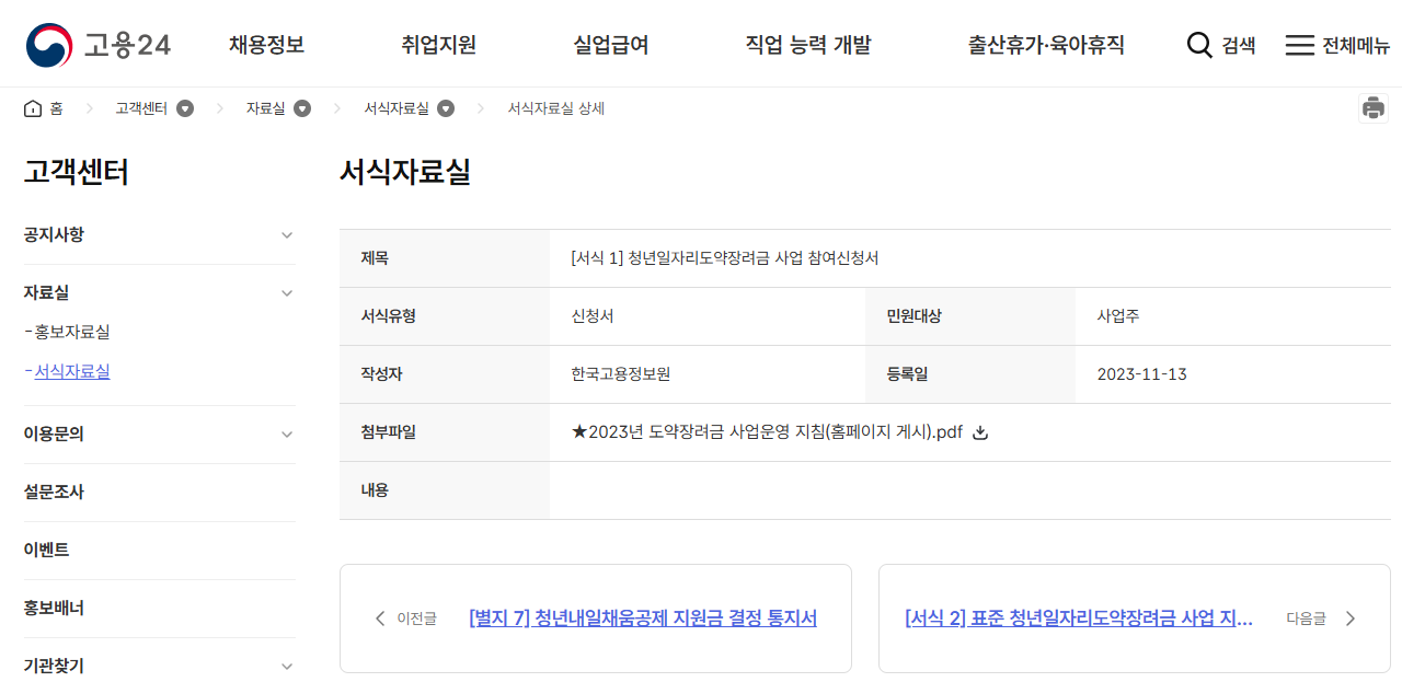 - 청년일자리도약장려금 지급 신청서