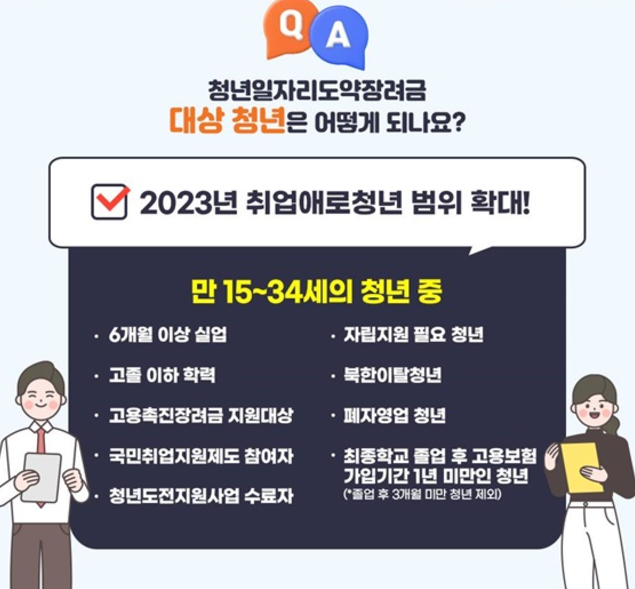 청년일자리도약장려금은 청년들이 직업을 찾고, 기업들이 청년을 고용할 수 있도록 지원하는 프로그램입니다. 2023년부터는 지원 대상이 확대되어 15세에서 34세까지의 청년들이 포함됩니다.