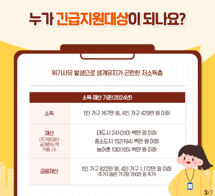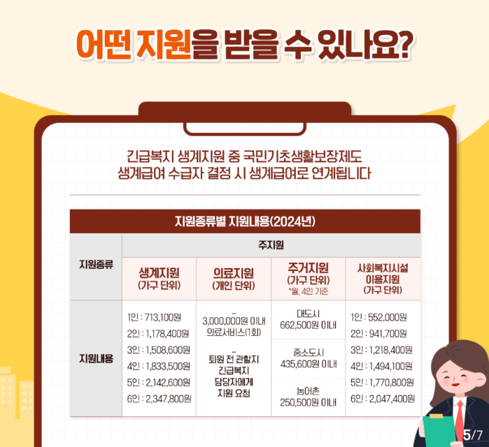 2024년 기준 긴급복지 생계지원에 대한 몇 가지 주요 변경 사항은 다음과 같습니다.