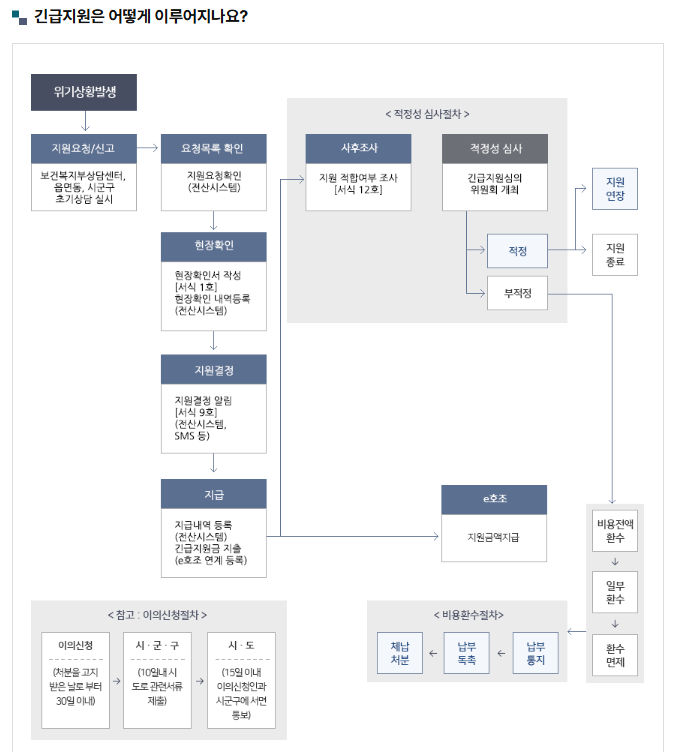 이 제도는 정부에서 운영하며, 각 지역의 주민센터를 통해 신청할 수 있습니다. 위기 상황의 예로는 실직, 질병, 재난 등이 있으며, 이러한 상황에서 생계 유지가 어려운 가구를 대상으로 합니다.